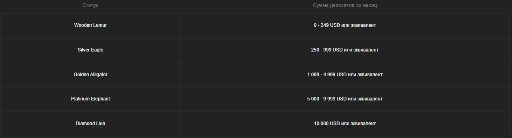 Также существует определенная система статусов для постоянных игроков, представленная ниже: